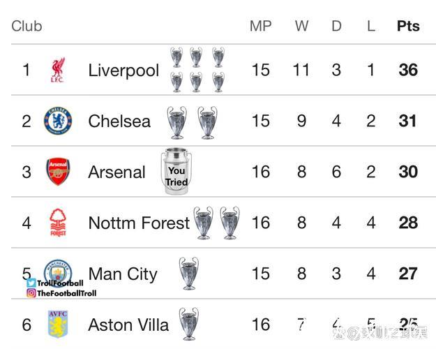 本赛季五大联赛球队欧冠积分:英超6队61分第1,